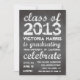 Make a standout graduation announcement with this easy to customize card. Design features distressed typography against a dark chalkboard background. Personalized it with your class year, name and graduation information. Non traditional, fun, bold and full of personality, this grad invite will be sure to surprise and delight friends and family alike.
