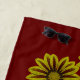 This original art beach towel has lots of bold and bright red and yellow stripy daisies all over it. The original photo of this summer flower has been muliplied to cover the unique towel and you can see the burgandy coloured background pocking through the large daisy design. This unique contempory design will definately look different on the beach. This modern floral pattern really stands out.