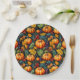 Large and small pumpkins, green and gold leaves, and lush purple grapes combine to make a beautiful Thanksgiving theme on this paper plate. Beautiful harvest image for your table!