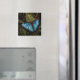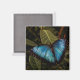 Blue Morpho butterfly shows off his brilliant, blue wings ( 5 - 8 inches span) while resting on foliage at butterfly wonderland. Photo by Ruth Jolly.