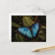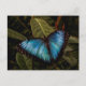 Blue Morpho butterfly shows off his brilliant, blue wings ( 5 - 8 inches span) while resting on foliage at butterfly wonderland. Photo by Ruth Jolly.