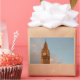 Rectangular souvenir photo sticker of Big Ben clock tower in the late afternoon sunlight with some clouds in the sky in London, the capital of the UK.