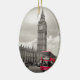 A red double decker bus passing in front of the Big Ben clocktower and parliament building in London England.