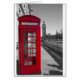 Red Telephone Box and big ben on Parliament square. black and white with the red box