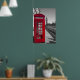 Red Telephone Box and big ben on Parliament square. black and white with the red box