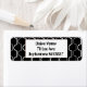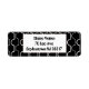 These return address labels have an art deco design of white half circles connect with lines on a field of black.