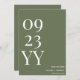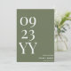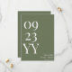 Make a lasting impression with the Big Bold Date Sage Green Save the Date. Featuring a calming sage green background with bold white letters and numbers, this minimalist design highlights your wedding date alongside the groom and bride's names. Perfect for modern, rustic, or nature-inspired weddings, this save-the-date card blends simplicity with elegance, ensuring your guests are excited to mark their calendars for your special day.