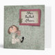 Cute little girl holding flowers on a background of vintage pink and green buds. She's all dressed up in her black buckle shoes and a ribbon in her hair. Name can be customized. On the back is a coordinating design saying "The End". Perfect for a baby shower gift, birthday gift, gift for a new mom, or for the Christmas holidays. You can also use it to showcase your child's art projects and school photos!