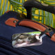 This luggage tag features a darling cat named Big Boy who was abandoned in the wild by his family, trapped, neutered and released. He is seen in this picture lying on a table in our backyard where we fed him and where he got daily doses of love and attention before we found him a forever home with a nice family. Who can resist this adorable tabby cat with a pink nose, white collar and one cropped ear tip.