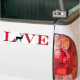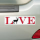 A fun bumpersticker for deer hunters with the word love in big block red letters and a silhouette of a many point buck replacing the O.