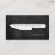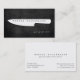 An oversized, graphic white chef's knife contains your name or business name for an eye-catching logo on this modern business card design. The background is a subtle, black woodgrain texture. Perfect for personal chefs, catering businesses, restaurants, food trucks, food writers and more! © 1201AM CREATIVE