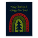 Big Christmas card with boho x-mas tree drawing. Extra large size card personalized with custom greeting. Giant XL greeting card with cute hand drawn Holiday design. Merry Christmas and a Happy New Year. Handwritten typography template.
