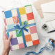 The happiest and brightest wrapping paper ever! This repeat pattern of large, colourful checkers is fun and festive for any occasion, from birthdays to babies to holidays, rainbow coloured squares are always the answer;