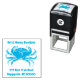 Self-inking stamp with crab image and return address text. Names at the top, with two lines for address at the bottom, this crab stamp is perfect for seafood lovers, crab fishermen or coastal residents.