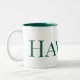 This is a large white coffee cup with a green inside and the word Hawaii written on it in green. It is a very beautiful and elegant city