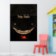 This black-dominant design has an illustration of a big scary shark illustration which follows a little red fish. You can customize the default "big fish" text.