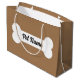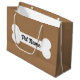 Big dog bone custom gift bag for new pet owner. Personalize with your own name or thank you text. Brown or custom background colour. Cute design with script typography. Great for animal Birthday party, celebration, shop, store, dog walker, dog groomer, pet sitter, dog lover, pet owner, dog mom etc.