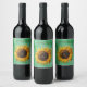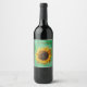 Big fancy Yellow sunflower on shades of green Wine Label