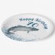 Big salmon fish jumping out of splashing blue water for 70th birthday party.