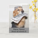This golden retriever newsboy is here to deliver the big news and send a message of congratulations.