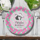 And she's off to the altar! A lady in her Derby hat against a background of hot pink, green and white diagonal blocks of stripes paper plates in 2 sizes. Fun for your bride-to-be's Derby themed bridal shower party. Use for any occasion, just change the wording. (Lady image can be deleted as can all the wording and white circle.) MATCHING items in our store.