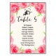 Table number cards featuring a list of your guests, table number, a silhouette of a lady in her Derby hat (lady can be removed) surrounded by a border of pinkish roses. **NOTE: CHANGE THE TABLE NUMBER, place in your shopping cart for each number you want to order. MATCHING items in our collection.