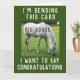 Greetings card with a funny horse message! I'm sending this card big horse (because) I want to say congratulations. Image is a photograph of a white horse grazing in a field.