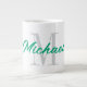 Big jumbo mug gift with custom name monogram. Personalized coffee cup for teach, tutor, coach, educator, wife, girlfriend, boyfriend, coworker, colleague, employee, school teacher, friend, mom, dad, husband, sister, aunt, uncle, grandma, grandpa, boss etc. Enormous size drinkware design for men, women and kids. Super XL oversized mugs for home or office. Also great as Birthday party present or thank you favour. Glamourous design with stylish script lettering.