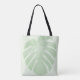 Tote bag with a large, tropical leaf to keep you in the get-away mood even after your vacation. Background colour is pale green, but can be changed.