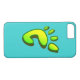 A cool illustration of a large footprint in vibrant gradient lime green with a dark grey drop shadow on a cheerful tranquil turquoise background.