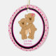 Want something special for that older or younger sibling? This ornament will be a keepsake for many years to come. It has adorable bears hugging each other. A taller and smaller one. It has a light pink background with darker pink small polka dots. In the centre is a large white circle outlined in a thin hot pink and black trim. Personalize with her name. Check out the many other designs and colours we have in this line. © JW Illustrations
