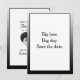 A simple, fun, Save the Date photo card template in black and white template that you can personalize. Unique, modern and not your every day invitation. Black border.