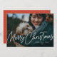 A large hand scripted "Merry Christmas" greeting is just delicate enough to showcase your favourite full-bleed family photo. This card works great with a variety of Christmas family photos-posed or candid.
