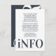 This ultra modern bold typography fantastic clean, tidy well designed minimal yet very playful bold info enclosure card is for any extra information for your events prior to the wedding ceremony, this information / details card & text placement in blue, grey and white for minimalistic style, however is customizable to other colours and is part of a unique suite and collection by Phrosne Ras Design. This would be great for those planning a fun black & white event, with this wedding enclosure card being bold and was inspired by fun-loving people who love a good party and don't mind straying from tradition.