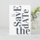 This ultra modern bold typography Save The Date. It is customizable to other colours and is part of a unique suite and collection by Phrosne Ras Design. This would be great for those planning a fun black & white event. Was inspired by fun-loving people who love a good party and don't mind straying from tradition.
