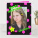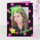This fun big or large birthday card is great for women or for teens or for girls. The big card features a photo of the birthday gal as the focal point. The picture is surrounded by a black and hot pink polka dot frame with the words "HAPPY BIRTHDAY" written in bright green at the top left and the name of the birthday gal at the bottom right. A yellow star appears on the bottom left with your custom age in it. This is a cute large birthday card which can be changed to any age to make a great big polka dots birthday card for her with photo. Copyright Kathy Henis