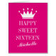 Big oversized Sweet 16 Birthday card with cute princess crown. Hot Neon Pink Happy 16th Birthday greeting card for girls. Girly design with stylish script typography for name. Personalized name and wishes or message on the inside. Fun sixteenth Birthday celebration greeting card for teenage kids turning sixteen. Make your own unique card for daughter, granddaughter, sister, stepdaughter, cousin etc.