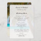 Big palm tree wedding menu template with specialty paper upgrade options. This menu will be printed on card stock and comes with white envelopes. Palm tree at the tropical ocean shore is the background image on front, and in full colour on the reverse. Easily fill in the templates to complete reception menu courses.