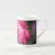 Elegant Bone China Mug featuring a photo of beautiful pink rose on dark green background. Pink rose symbolizes gentle love, affection, and appreciation. A glamourous romantic accent to your kitchen, a stylish gift for any special occasion (Saint Valentine's Day, Mother's day, Grandparents Day, birthday).