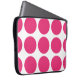 Cute and trendy Big Polka Dots Laptop Sleeve. This design features over-sized big circle polka dots in pink and white. Text can be added to this design to give it a personal touch.