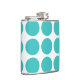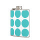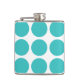 Cute and trendy Big Polka Dots Flask. This design features over-sized big circle polka dots in turquoise and white. Text can be added to this design to give it a personal touch.