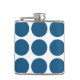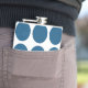 Cute and trendy Big Polka Dots Flask. This design features over-sized big circle polka dots in blue and white. Text can be added to this design to give it a personal touch.