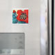 Big Red is a mixed media painting of a hibiscus on a square magnet.