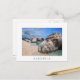 Postcard of the big rocks at the sand beach of Cala Mariolu, situated near Cala Luna the Gulf of Orosei on the island of Sardinia, Italy with a white border and the text: 'Sardinia'.