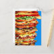 This design features a coloured pencil drawing of a huge sandwich, stacked to overflowing with cold cuts, lettuce, onions and tomatoes.