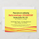 Bright yellow, red and black double sided 70th birthday invitation. Bright graphic invitation customise with your own details. Unique design by Sarah Trett.
