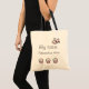 These bags were super cute (I purchased 3). The material is more of a canvas look & feel. The colour of the bag is slightly off white, but the letters look exactly as pictured. I took 3 photos in different lighting. Would recommend! I liked how there was an option to choose the font and colour of the name. The words are legible and the colours are exactly as pictured.