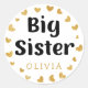 Big Sister Custom Name with gold hearts Classic Round Sticker