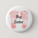 "Big Sister" Pink Footprints White and Pink Button