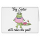 Big Sister T-shirts, mugs, cards, magnets, postage, stickers, and other big sister apparel and gift items featuring a girl frog and lily pad and text that reads "Big Sister still rules the pad!". Great sibling gifts for the older sis when the new baby brother or baby sister arrives!
